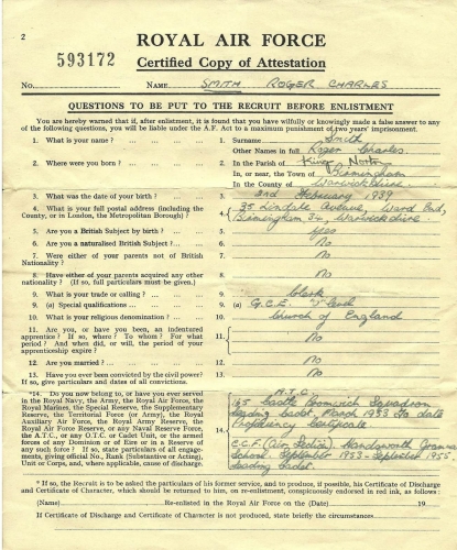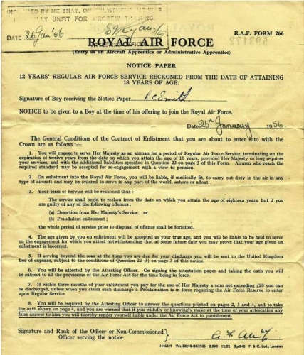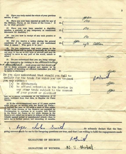 At last we have more images for the 27th Entry. My thanks to Roger Smith for providing a copy of his attestation certificate (RAF F266) and end of terms reports as well as a photo of the entry badge and another, which although we already have it, lists the names of the guys in the picture.