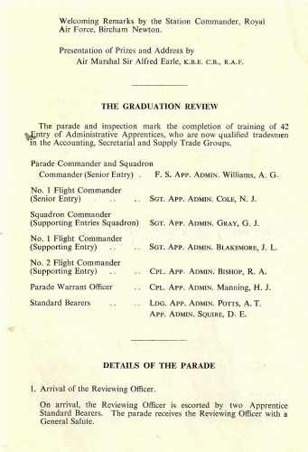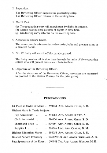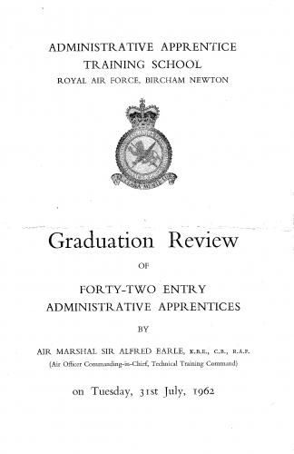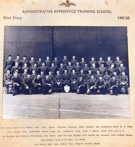 The FORTY SECOND Entry was attested at RAF Halton on 9/10 January 1961 and proceeded to the Administrative Apprentice Training School RAF Bircham Newton where training was undertaken in the trades of Pay Accounting, Clerk Secretarial and Supply until 31 July 1962.