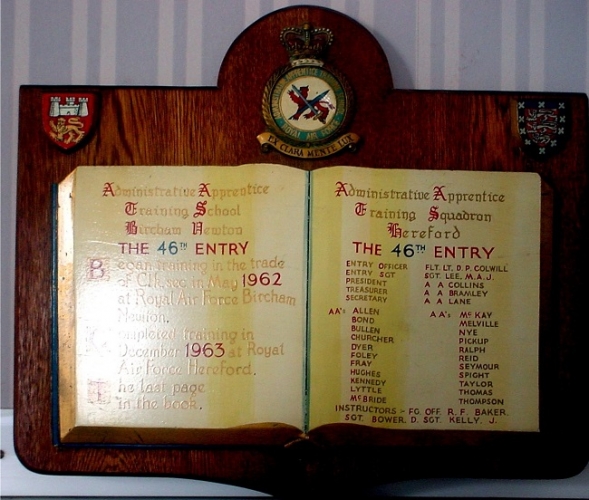 The FORTY SIXTH Entry was attested at the Administrative Apprentice Training School RAF Bircham Newton in May 1962. The School transferred to RAF Hereford in January 1963. Training was undertaken at RAF Bircham Newton and RAF Hereford in the trade Clerk Secretarial until 13 December 1963. This was the last Entry to be trained to Jnr Tech rank and to be trained over a period of 20 months.